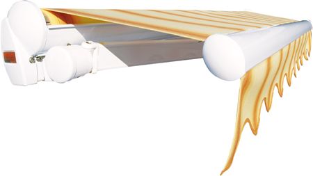 Markisen, die jeder kennt. Mit zusätzlichen Ausstattungsmerkmalen wie z.B. einer Blende anstelle des Volants und vielen Farben sowie den zahlreichen Markisentüchern kann man sich hier seine individuelle Markise zusammenstellen (Bild zeigt das Modell Kreta MT der Firma Mobau) |
